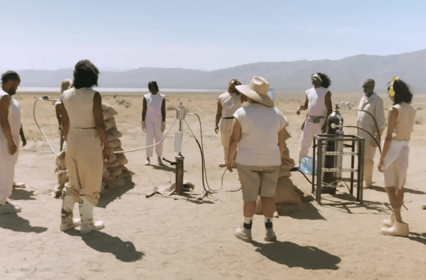 Artist and Butler attended the same high school in Pasadena, and Artist draws on convergences in their two biographies alongside the resonances of Butler’s fiction in the present. Artist’s recent work also reflects a deep study of Butler’s papers at the Huntington Library in San Marino, California: Some pieces are meticulous graphite tracings of notes and fragments encountered there. These archival moments are balanced with more speculative engagements with the writer’s life and work. In The Monophobic Response (2024), for instance, Artist restaged a 1936 rocket engine test in the desert with a community of Butler enthusiasts, artists, and engineers. Framed by recited passages from The Book of the Living, their performance echoes Earthseed’s dreams of “taking root among the stars.” Artist’s multidisciplinary practice of studying (with) Butler has assembled a vision of Southern California that spans past and future, utopia and cataclysm.