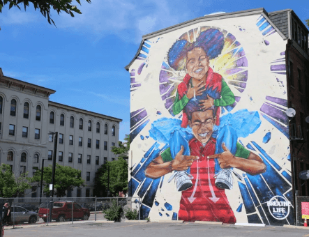 This iteration of Breathe Life features a fresh and graphic portrayal of two children, smiling widely, surrounded by radiant beams, practicing the American Sign Language words Breathe Life. More than just a title, Breathe Life is a philosophy, meant to promote positivity, share energy, and lift-up images that reflect the community back to itself.