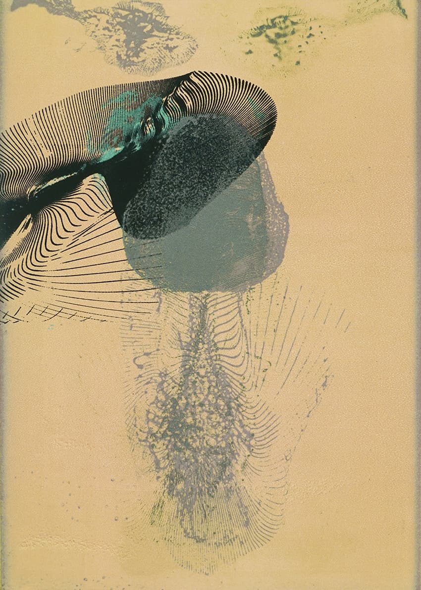 In addition to screen printing, I have added monoprint, mokulito, photo-etching, and photopolymer intaglio to my tool kit, while trying to evoke the mysterious subjects that revealed themselves that day.