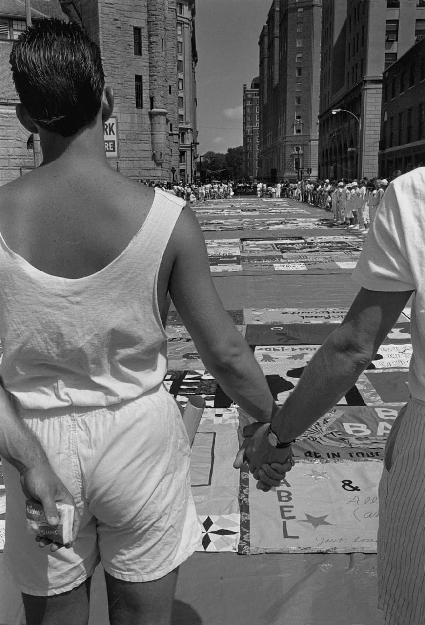 In Living with AIDS, photographer Sal Lopes explores how the city of Boston was affected by the AIDS Crisis. From 1988 to 1992, Lopes traced three interconnected stories— the NAMES Project AIDS Quilt and its display in both Boston and Washington D.C.; the Buddy Program, run by the AIDS Action Committee of Massachusetts, which offered volunteer support to those living with AIDS; and the Boyce family, whose child Brianna was living with AIDS.