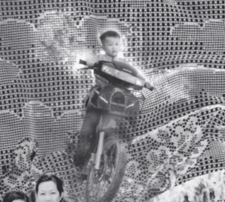 Designed by Los Angeles-based artist Misa Chhan (they/them), Year of the Snake is a two-part installation composed of 20 flags and 10 aluminum prints that honor the legacy and resilience of Cambodian diasporic communities and the artist’s own family. To create each series of works, the artist drew upon a range of domestic materials –curtains, doilies, archival family photo albums, and furniture from their family home– and continued their exploration of the color blue via indigo dyeing and cyanotype processes. Taken together, Chhan’s installation explores how we make home and belonging through journeys from one country to another, from one realm to another, and even in the everyday transitions and changes from one moment to the next.