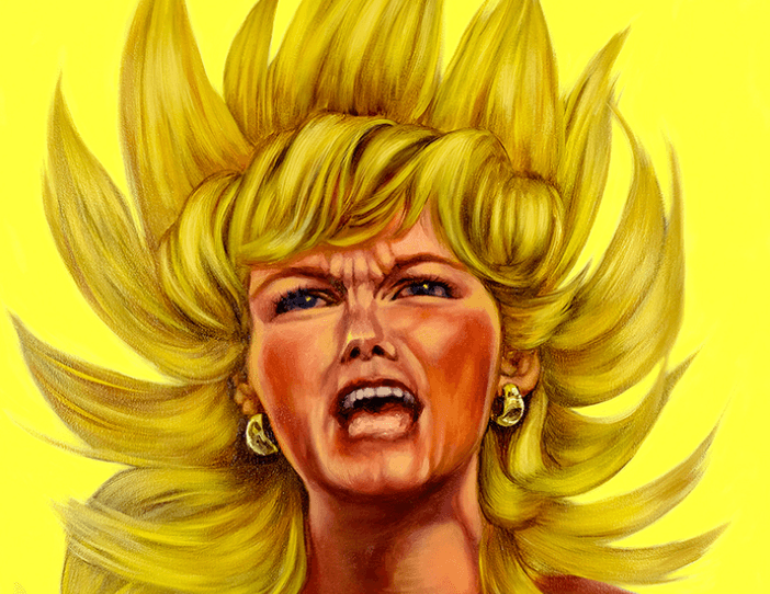 In the first part, Rage, Yun examines the “Karen” phenomenon, in which entitled white women weaponize their privilege and vulnerability to unleash violent, aggressive behaviors toward marginalized communities. “The spectacle and viral spreading of Karen,” Yun states, “operates as a response to the current social climate, while simultaneously separating the phenomenon from critical dialogue.” Yun is fascinated by the virality of Karen, a figure both absurd and dangerous, and attempts to make sense of Karens through humorous and surreal paintings that navigate themes of desire, femininity, and power.