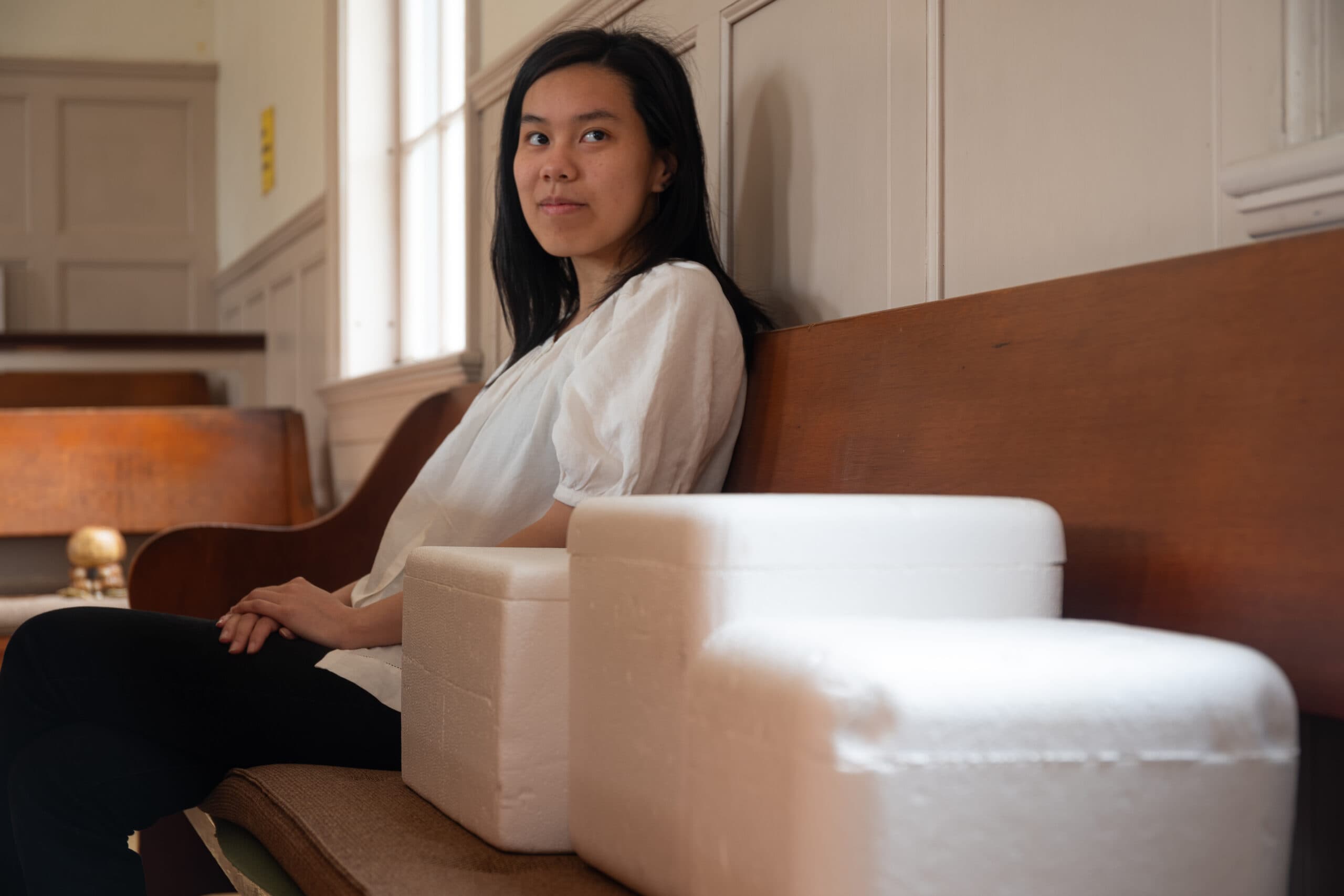 Inspired by Vietnamese street vending culture and the labor of the artist's grandfather, who once sold ice by trike, See You Tomorrow is an outdoor installation comprising two interactive, pedal-powered flip books from artist Vivian Tran. Two tricycles are installed face-to-face, each with a large-scale flip book apparatus connected to its pedals. As passersby ride the trikes, they simultaneously animate and star in sequences of horizon imagery collected via video stills from tv shows popular in Vietnam in the 1960s-2000s. Centered in front of the moving images, riders produce an animation in which their body becomes a thread, seaming together scattered moments across time and place. Though each person produces a unique visual, they cannot see the image they create themselves. In this way, the installation functions via interdependencies: it cannot be fully seen without another’s presence. The act of understanding becomes contingent on witnessing another’s movement, on inhabiting space together.