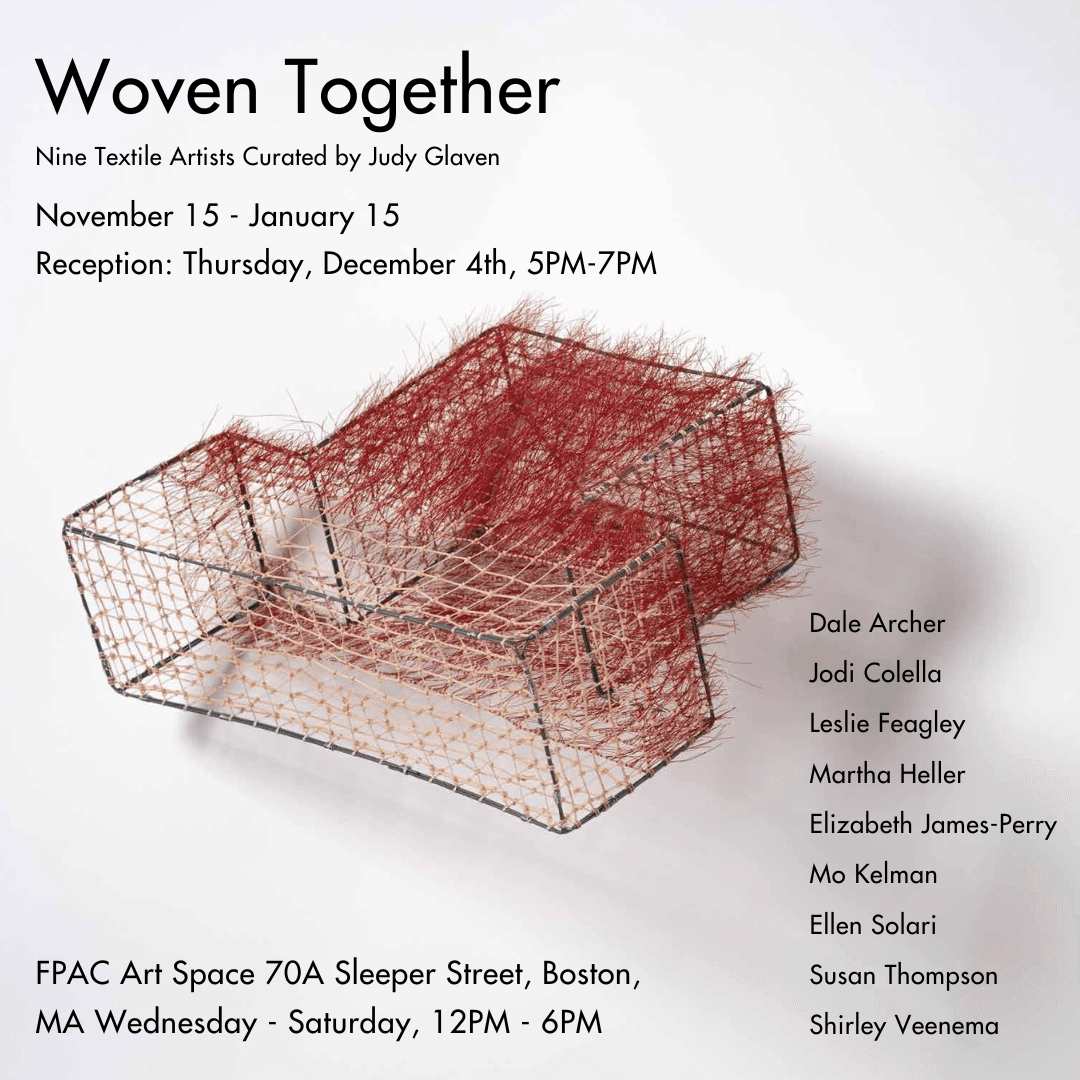 Showcasing the work of nine textile artists, the diversity of approaches to fabric comes together to visualize how important our everyday connections are. With an undercurrent emphasizing family, community and environment, we are reminded that we are all woven together, perhaps held by just a thread, but connected nonetheless.