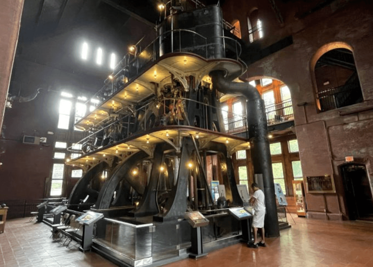 Nineteenth-century water pumping facility with occasional art exhibitions on view among the engines